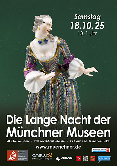 Zeitreise & Geschichte erleben die Besucher:innen im Bayerischen Nationalmuseum: Die Rokoko-Dame von Franz Anton Bustelli, Isabella aus der „Commedia dell’arte“, lädt als diesjähriges Veranstaltungsmotiv galant zur Langen Nacht ein. Historische Räume, Sammlungen und interaktive Stationen erwecken das höfische Leben sowie Wissenschaft und Aufklärung zum Leben. Auch die Glyptothek und das Museum für Abgüsse Klassischer Bildwerke beleben antike Skulpturen mit Führungen, Tanzperformances und Livemusik. Geschichte wird zudem auf Rädern erfahrbar: Das Rollende Museum verwandelt rund 100 Oldtimer in ein rollendes Freilichtmuseum und führt die Gäste auf nostalgische Zeitreisen zwischen dem Deutschen Museum und dem Deutschen Museum Verkehrszentrum, während die Besitzer:innen ihre Leidenschaft und Geschichten teilen.